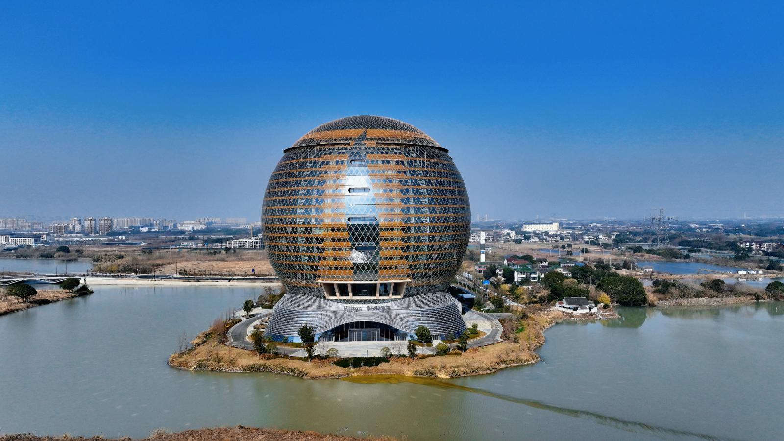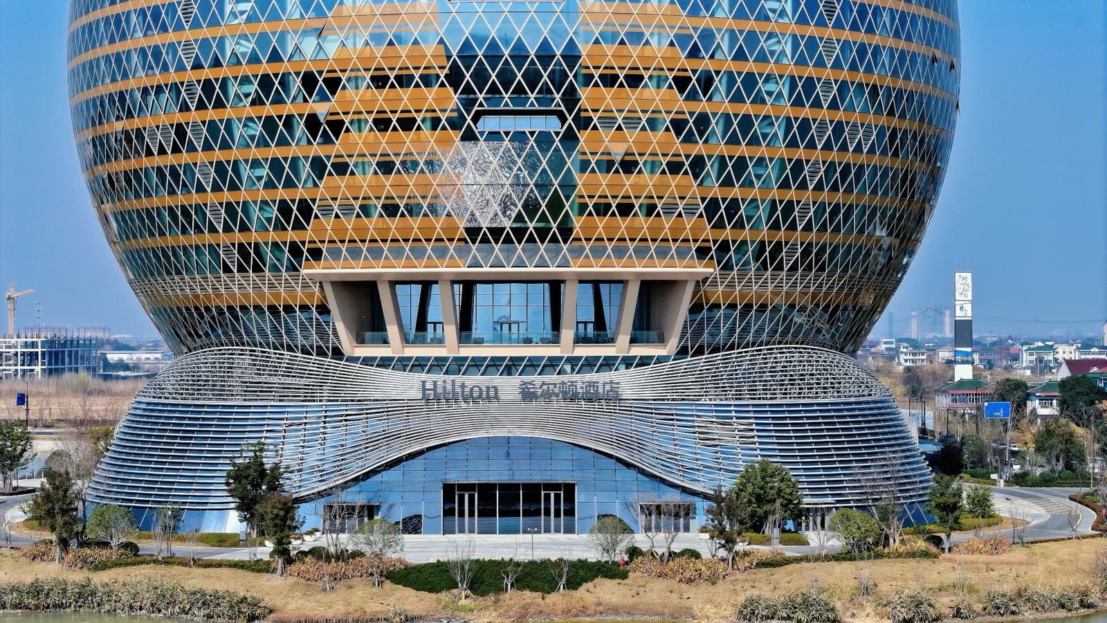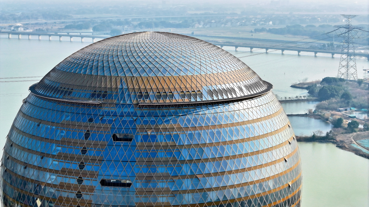 The Sun Hotel project stands as the most technically sophisticated and largest single spherical curtain wall project undertaken by our company to date. Upon the completion of the main exterior facade works, the project successfully passed the water drenching test. It has pioneered the application of a domestic super-large spherical integrated waterproof and drainage unitized glass curtain wall system, breaking through the industry challenges of balanced force distribution in large spherical lattice shell structures and efficient drainage for building exterior facades.